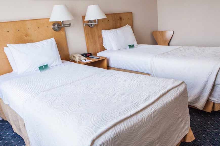 Each hotel room has a private bath and every guest room is furnished with a small writing desk, or built-in mirrored vanity.
